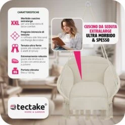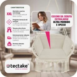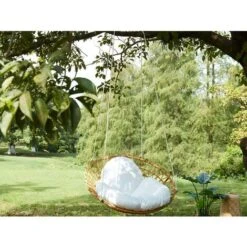 Poltrona Sospesa In Resina Intrecciata Effetto Giunco Colore Cuscino: Bianco – ELIOA