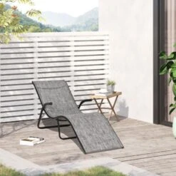 Outsunny Lettino Sdraio Pendisole Da Esterno Con Cuscino Poggiatesta Pieghevole Grigio