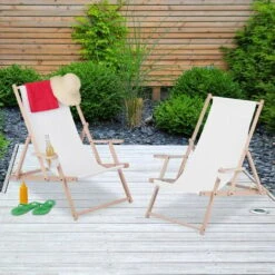 Sdraio Da Giardino Struttura Legno E Tessuto Beige Cuscino Poggiatesta Anzio