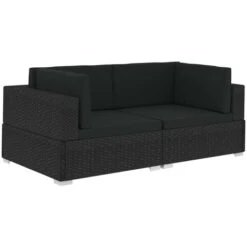 Nova Divano Per Esterni A 2 Sedute Con Portavivande In Polyrattan Vari Colori Colore : Nero E Avorio
