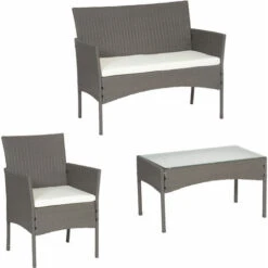 KIT SALOTTO TONALITA TORTORA DIVANO DA GIARDINO ESTERNO VENEZIA IN SIMILRATTAN 4 POSTI CON CUSCINI