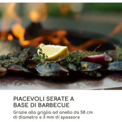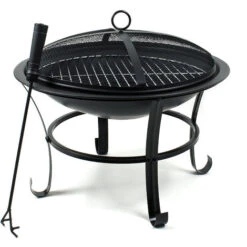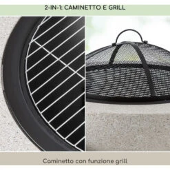 Braciere & Barbecue 2in1 Ø56cm Con Griglia Parascintille E Attizzatoio Acciaio Verniciato A Polvere