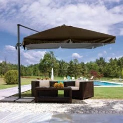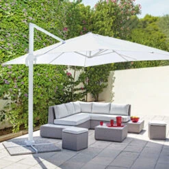 Ombrellone Da Giardino In Alluminio Palo Decentrato Per Casa E Locali 3x3m Paradise White