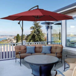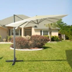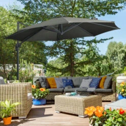 Outsunny Ombrellone Impermeabile Decentrato Verde Struttura In Acciaio Con Manovella Φ300 X 250 Cm