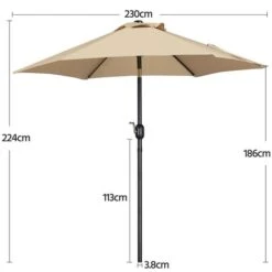OUTSUNNY Outusnny Ombrellone Da Giardino Con Palo Centrale In Alluminio, Φ196cm, Grigio Chiaro