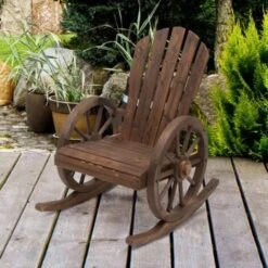 Outsunny Sedia A Dondolo Stile Rustico Adirondack In Legno Di Abete