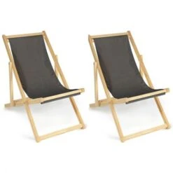 Set Di 2 Lettini Pieghevoli In Legno Tela Chilienne Grigio Antracite