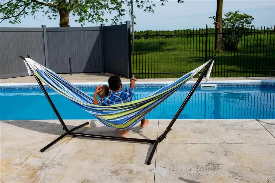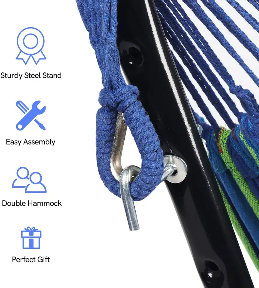 La struttura dell’amaca è realizzata in acciaio di alta qualità per garantirne la stabilità e l’utilizzo a lungo nel tempo.