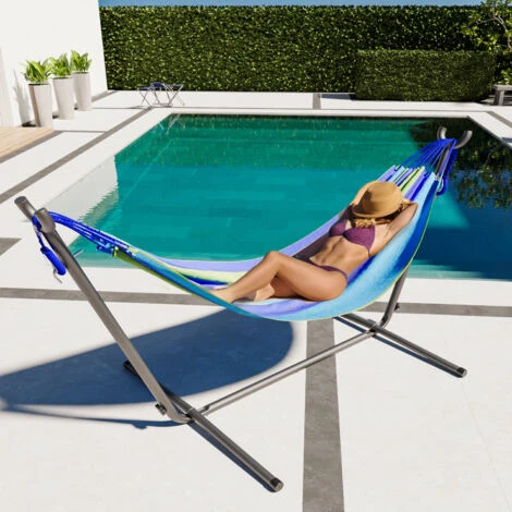 Splendida e comoda amaca con supporto in acciaio modello Denpasar.