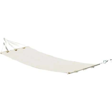 Amaca in cotone di colore ecrù con stecche in legno, l”accessorio che non può mancare in nessuno spazio esterno. Da posizionare in un albero oppure su una trave, sarà il luogo perfetto per potersi rilassare e cullare, per poter fare un riposino pomeridiano oppure leggere un libro. Amaca con supporto escluso, acquistabile separatamente.
