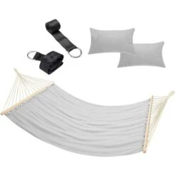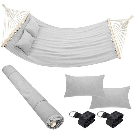 CONTENUTO DELLA CONFEZIONE:1 XÂ Amaca Giardino 2 Posti Legno Cotone Relax Esterno Campeggio 345x150cm Grigio