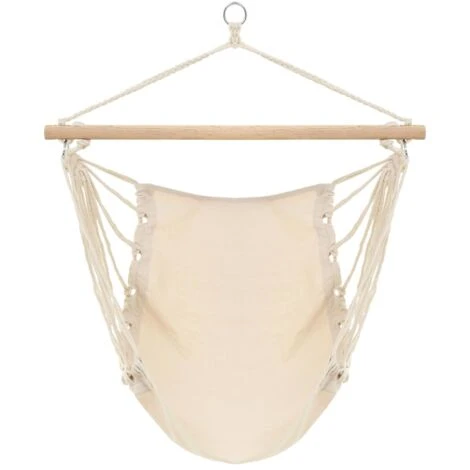L’amaca è resistente e è stata realizzata in poliestere con imbottitura in cotone. E’ fissata su di un’ampia e robusta asta in legno duro e può sostenere fino a 110 kg di peso. La seduta dell’amaca è ampia pari a 185 x 125 cm.