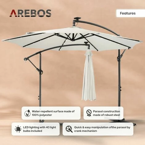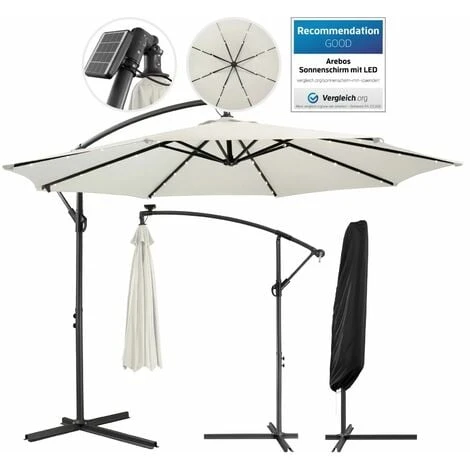 A differenza di altri modelli, l’ombrellone Arebos è dotato di 8 bracci anziché 6 e di 40 luci a LED anziché 25. Più stabilità e serate più luminose con l’ombrellone Arebos!