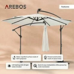 A differenza di altri ombrelloni a LED, l’ombrellone Arebos ha 8 braccia invece di 6 e 40 LED invece di 25!