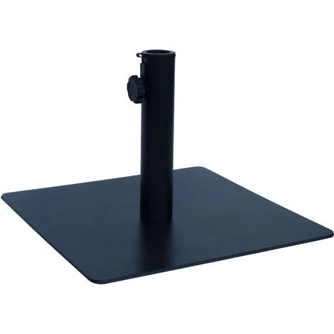 È una base solida per avere un ombrellone stabile. Questa base è realizzata in ferro, è quadrangolare (45x45cm, altezza 30cm). È di colore nero opaco satinato.