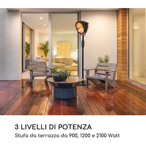 3 livelli di calore: radiatore da terrazza con 900, 1200 e 2100 Watt
