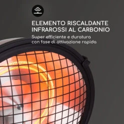 Questa stufa può essere collocata dappertutto, riscaldando in modo rapido ed efficiente fino a 2100 watt. L’elemento riscaldante in carbonio a infrarossi con IR Comfort Heat non solo riscalda velocemente ma, grazie alla radiazione a infrarossi, colpisce anche le persone e gli oggetti che si trovano nelle vicinanze, senza riscaldare l’aria. Inoltre, la testa riscaldante ha un ampio raggio di rotazione ed è facile da posizionare, il che rende questa stufa ancora più pratica.