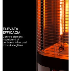 efficientissimo e durevole: con tre elementi riscaldanti in carbonio a infrarossi selezionabili individualmente