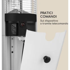 Per un’elevata potenza riscaldante e per un irradiamento efficace si trovano tre elementi riscaldanti in carbonio da 900 Watt ciascuno. Inoltre, è possibile selezionare i livelli riscaldanti da utilizzare contemporaneamente. I 2700 Watt ai massimi regimi scaldano in modo efficace e garantiscono ovunque un piacevole tepore. La gestione delle funzioni dell’irradiatore può avvenire sul dispositivo, o comodamente tramite il telecomando incluso in consegna. La protezione IP34 dell’irradiatore permette l’uso all’aperto, dato che tutela il dispositivo da spruzzi e getti d’acqua.