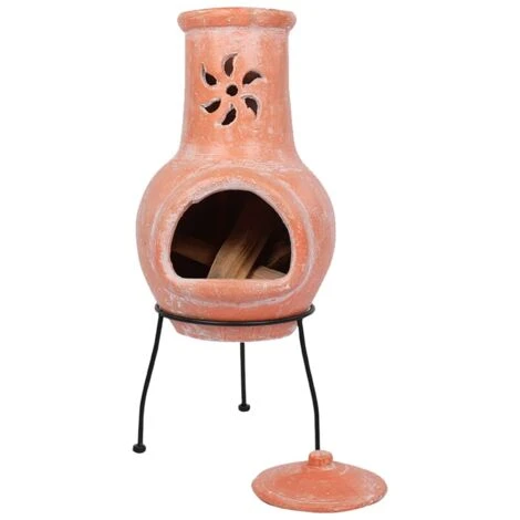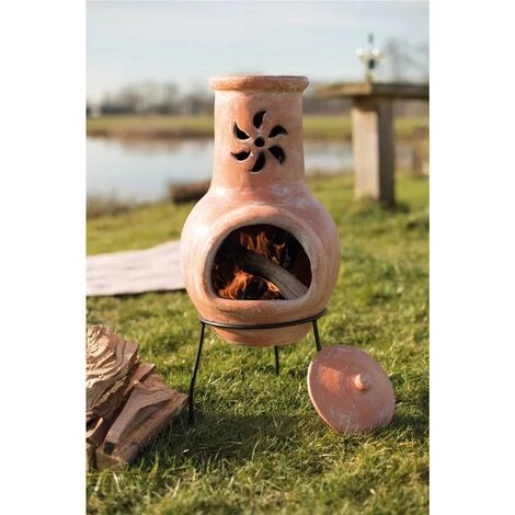 - Compreso un supporto robusto in acciaio verniciato a polvere nero e un coperchio per camino in argilla