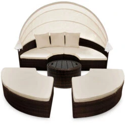 Trasformabile da lettino predisole a gruppo di sedute per fare un aperitivo in compagnia. L’isola prendisole viene consegnata in segmenti individuali. Il materiale di montaggio per assemblare la struttura è incluso.