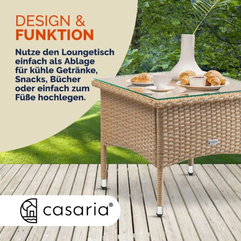 I tavolini in polyrattan conferiscono all’ambiente un tocco elegante. Dotati di piani in vetro di alta qualità, i tavoli da giardino offrono molto spazio e sono facili da pulire.