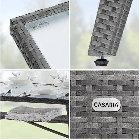 Il grande tavolo da giardino di CASARIA® diventerà il pezzo forte del vostro giardino, della vostra terrazza o del vostro balcone. Il grande piano in vetro smerigliato permette di far sedere fino a 8 persone.
