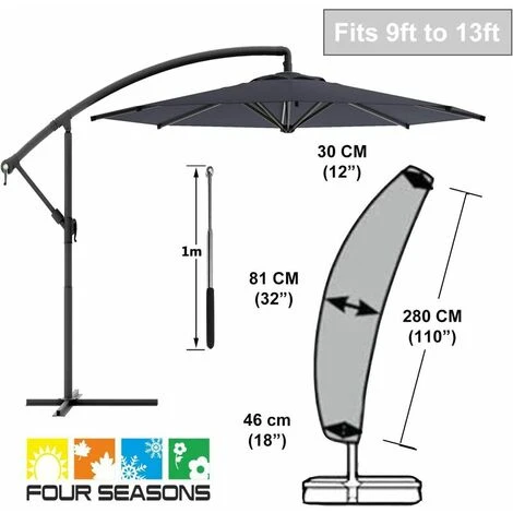 Questa copertura per ombrellone è adatta per ombrelloni esterni con un diametro da 275 cm a 375 cm. Si consiglia di misurare le dimensioni del proprio ombrellone prima di acquistare la copertura per ombrellone.