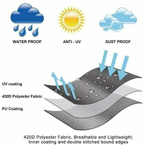 - 【Resistente e fulmineo】 La copertura per la protezione solare è realizzata in tessuto Oxford 420D robusto e impermeabile, il rivestimento in PVC rende la copertura per la protezione solare e l’ombrellone più resistenti e previene lo sbiadimento. La copertura protettiva ha un’eccellente resistenza al sole, proteggi meglio il tuo ombrello da ambienti difficili come luce solare, pioggia, neve, polvere, gelo o escrementi di uccelli e altro ancora.