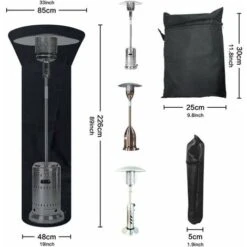 Dimensioni universali: 226 cm * 85 cm * 48 cm . Le dimensioni universali possono adattarsi a molti riscaldatori a cupola rotondi per esterni di diverse marche. Può ridurre efficacemente i tuoi problemi durante lo shopping, perché questa copertura per riscaldatore esterno è adatta a molti riscaldatori. (Nota: si prega di controllare le dimensioni prima di ordinare, grazie)