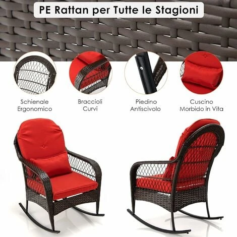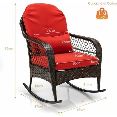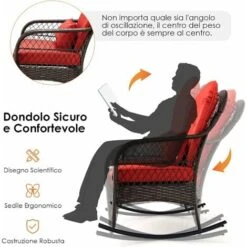 - Multiuso : Il rattan non solo prolunga la durata della sedia a dondolo, ma aggiunge eleganza all’ambiente, diventando un complemento d’arredo appariscente. Sia che tu voglia rilassarti in balcone, piscina, cortile, giardino o in altri spazi esterni, questa sedia a dondolo sarà la scelta perfetta.
