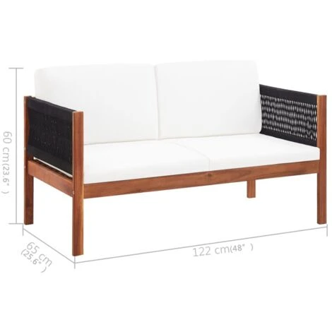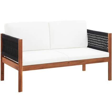 Grazie al legno massello di acacia, il divano presenta una durevolezza estrema ed è adatto per l’uso esterno. I particolari costruiti con la corda sono un’attrattiva di questo divano da giardino. Inoltre, la panca è leggera e facile da spostare, mentre i cuscini imbottiti ne assicurano il massimo comfort.