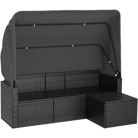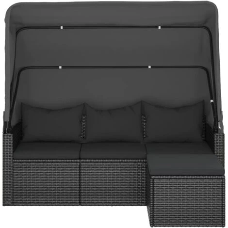 Questo confortevole divano da giardino a 3 posti con tetto e poggiapiedi è la combinazione perfetta tra stile e funzionalità .