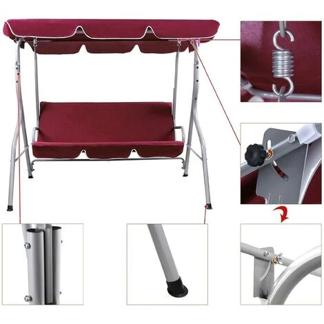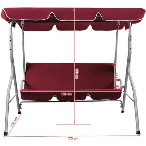1 x Dondolo da Giardino 3 Posti Altalena Esterno Acciaio con Tettuccio Rosso Bordeau