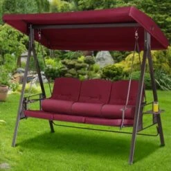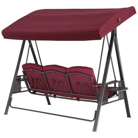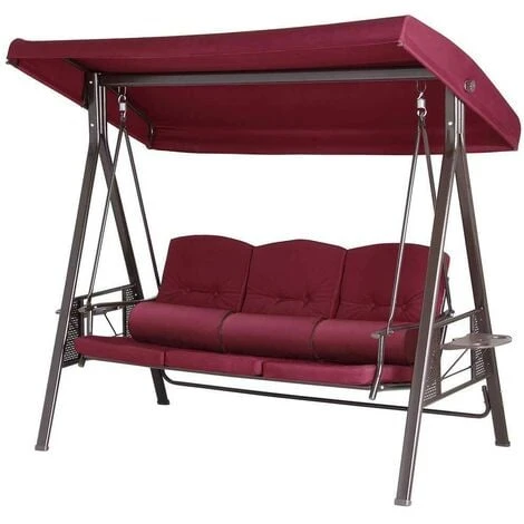 1 x Dondolo Giardino Ibiza 3 Posti con Parasole Cuscini e Vassoio Pieghevole Bordeax