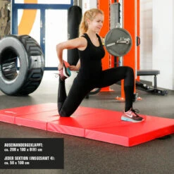 Le quattro sezioni del materassino anticaduta sono realizzate in morbida schiuma EPE (polietilene espanso), il rivestimento in PVC di alta qualità è impermeabile al sudore ed alla saliva. Dimensioni complessive ca. 200x100x8cm, ripiegato ca. 50x100x32cm, peso ca. 4,05 kg.