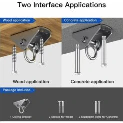 【Facile da installare】 La confezione include: 1 staffa da soffitto, 2 viti per legno, 2 viti di tensione per cemento. Seguire i passaggi sulla pagina del prodotto per l’installazione. Non installarlo alla cieca. È meglio trovare professionisti in grado di installare.