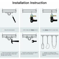 【Nota】Fissaggio solo su soffitti in cemento o travi in legno con l’hardware di fissaggio fornito. Nessun fissaggio a soffitti in cartongesso, pareti in argilla o altri materiali da costruzione morbidi.