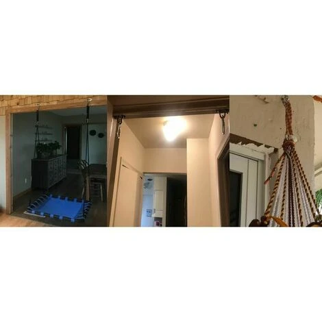 Pacchetto include: 2 * Montaggio a soffitto con anello, 2 * moschettoni a molla , 16 * Viti e tasselli