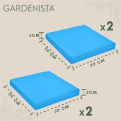 Dimensioni: i cuscini per sedili Gardenista per rattan sono disponibili in un set da 4 pezzi, che comprende 2 cuscini per divano e 2 cuscini per sedia. I cuscini del divano misurano 56 cm di larghezza, 50 cm di profondità e 5 cm di spessore, mentre i cuscini della sedia misurano 50 cm di larghezza, 50 cm di profondità e 5 cm di spessore. Questi cuscini sono progettati per offrire comfort e durata e sono realizzati appositamente per adattarsi ai mobili Keter Allibert Carolina.