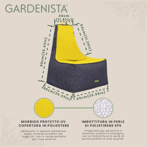 Dimensioni: la poltrona a sacco da esterno gigante con schienale alto Gardenista è un’opzione di seduta lussuosa e confortevole, che misura 65 cm di larghezza, 90 cm di altezza e 90 cm di profondità. Con il suo design dallo schienale alto, questo pouf gigante offre ampio supporto e un’esperienza di seduta spaziosa. Perfetto per rilassarsi e distendersi.