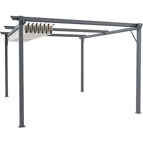 Pergola da giardino con struttura in acciaio e telo richiudibile modello “Koloa”.