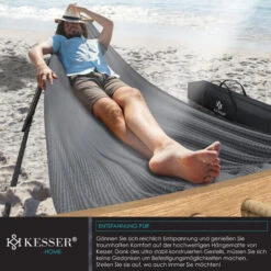 Tessuto in cotone lavorato di alta qualità estremamente leggero. Altezza e larghezza regolabili in base alla posizione e alle preferenze personali. Con KESSER, anche le vacanze a casa sono decisamente meglio! Non ci sono alberi sul tuo balcone? Nessun problema! La nostra amaca di alta qualità viene fornita in materiale robusto e acciaio in lega. Questo ti permette di trasformare il tuo terrazzo, giardino o balcone in un’elegante oasi per il riposo, il relax e la meditazione, in pochi e semplici passaggi, anche senza punti di fissaggio esistenti.
