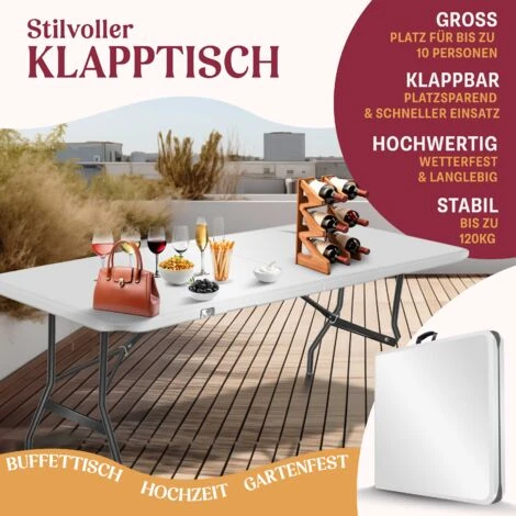 KESSER Pratico tavolo pieghevole tavolo per feste/tavolo da buffet Questo tavolo da giardino da 183 cm è particolarmente veloce e facile da montare!