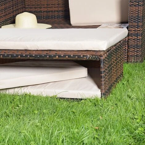 Questi mobili da giardino in rattan marrone sono disponibili anche in una versione di lusso, perfetta per coloro che desiderano arredare il proprio spazio esterno con stile e raffinatezza. Grazie alle loro sedute comode e al tavolo pieghevole, questi mobili da giardino offrono una soluzione pratica e funzionale per i tuoi momenti all’aperto.
