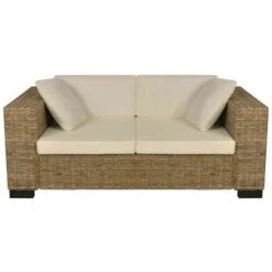 Questo divano in rattan combina stile e funzionalità e sarà un’ottima aggiunta alla tua casa. Grazie al materiale in rattan originale di alta qualità, i divani sono facili da pulire, resistenti e adatti all’utilizzo quotidiano. Sono dotati di un robusto telaio in legno, resistente e stabile. I cuscini e gli schienali sono molto adattabili e lavabili grazie alle loro fodere estraibili. Inoltre, i braccioli larghi aggiungono ancora più comfort alla seduta. La consegna include un divano a 2 posti, due cuscini della seduta, due cuscini per lo schienale e due cuscini.