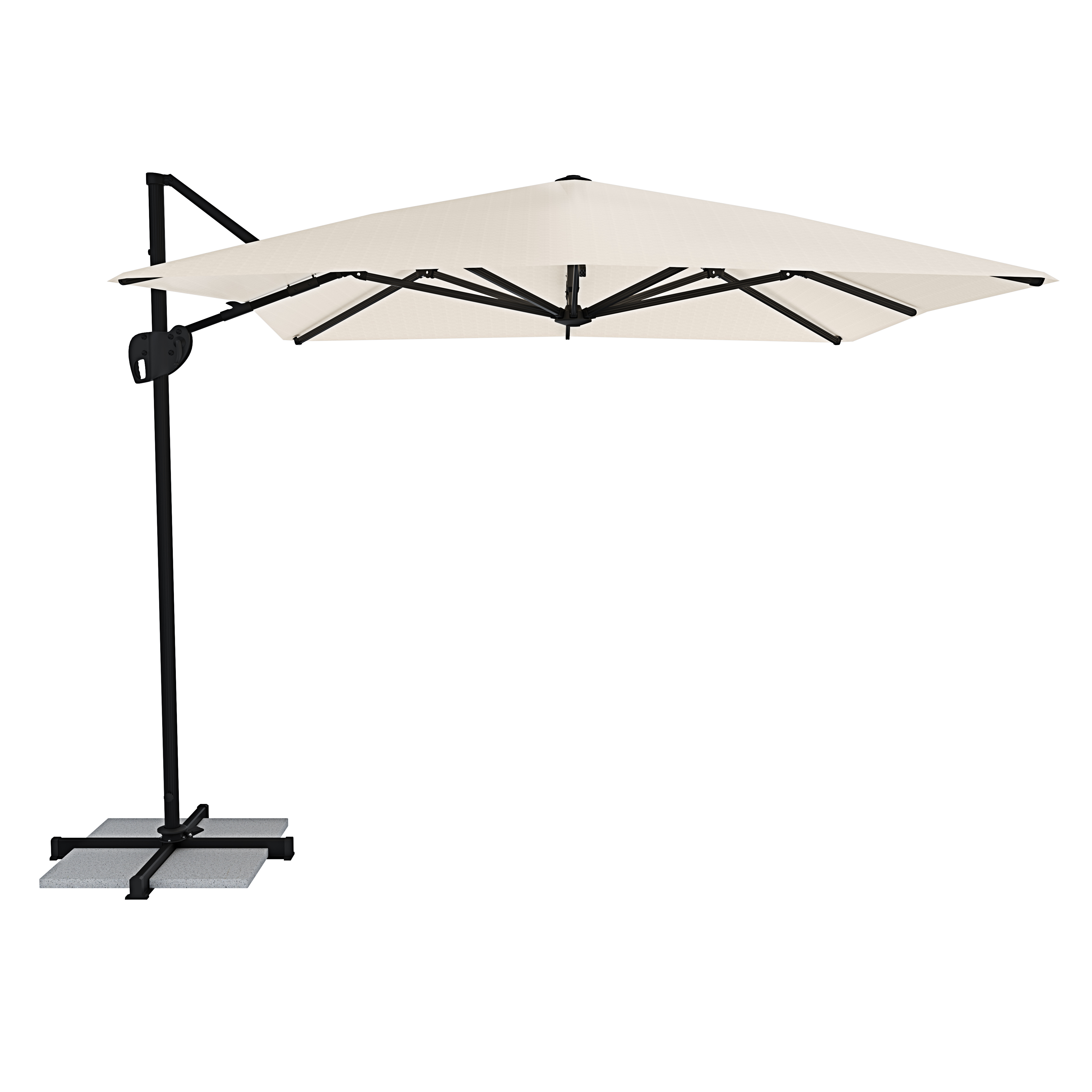 L’ apertura manuale a manovella vi permetterà di aprire o chiudere l’ombrellone facilmente ed in maniera veloce, con la maniglia laterale potrete regolare l’inclinazione dell’ombrellone mentre con il pedale a frizione potrete ruotarlo a 360°.
