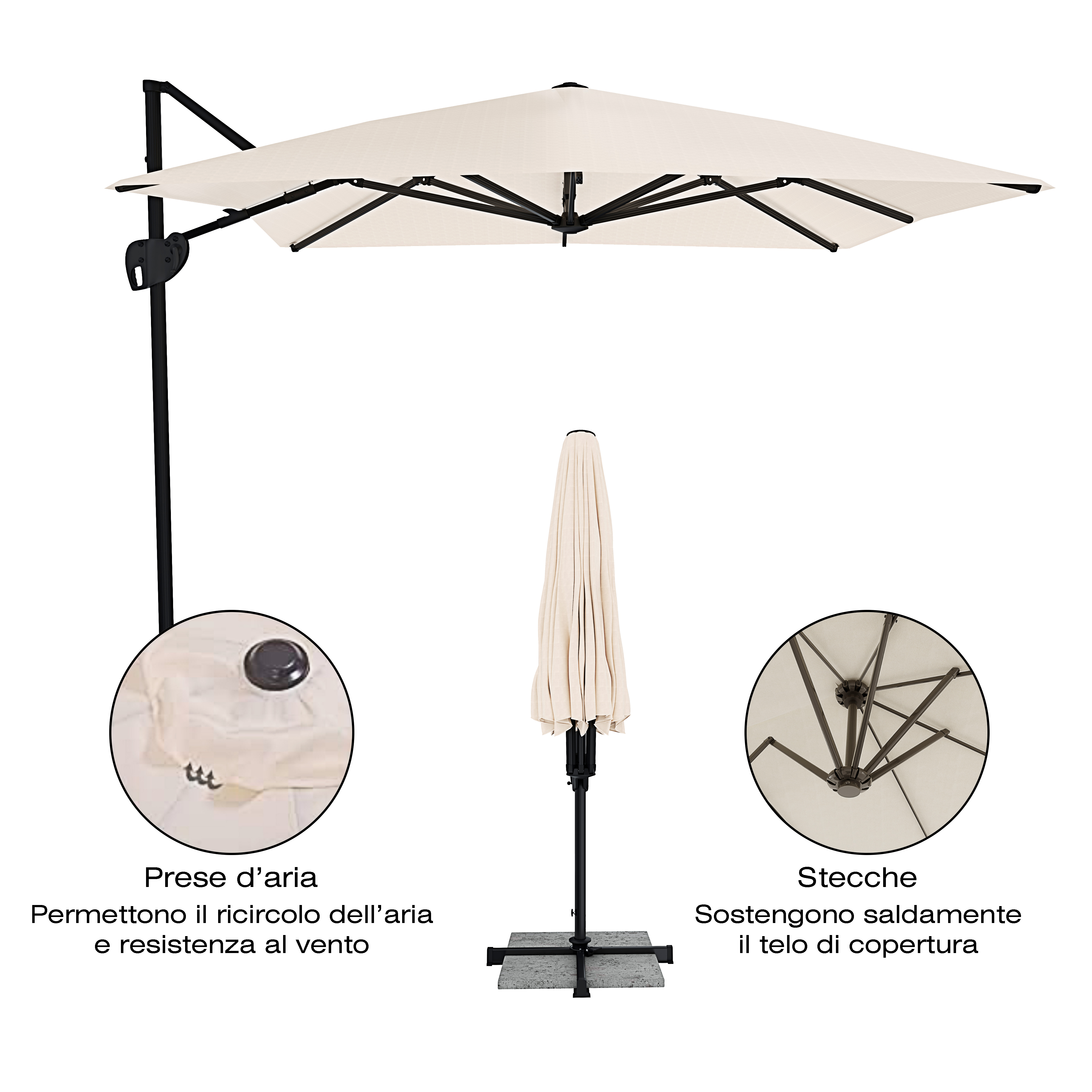 – Dimensioni ombrellone: 3 x 4 metri