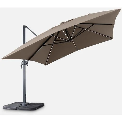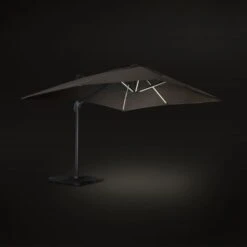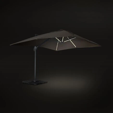 Il sistema LED è perfettamente integrato all’ombrellone, non c’è nessun filo in vista; tutto il circuito è nascosto con cura nei diversi elementi che compongono l’ombrellone.