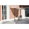 Questo elegante ombrellone da balcone è la scelta perfetta per creare un po’ d’ombra e proteggervi dai dannosi raggi UV del sole. Il telo di questo parasole è realizzato in poliestere resistente ai raggi UV e anti-sbiadimento, offre una protezione ottimale contro il sole ed è molto facile da pulire. Il palo ha un diametro di 38 mm e può essere inserito sulla base o nei fori presenti al centro dei tavoli da giardino. La forma semicircolare arricchisce lo stile unico del parasole. Il robusto palo in legno, in combinazione con i 5 resistenti braccetti, rende l’ombrellone molto stabile e durevole. Il nostro ombrellone può essere facilmente aperto e richiuso grazie al meccanismo a manovella. Questo articolo è facile da assemblare. Si prega di notare che il supporto non è incluso nella consegna. Si consiglia di trattare il tessuto dell’ombrellone con uno spray impermeabilizzante se sottoposto a forti piogge.